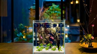 水の中で枯れない「花(Art)」と、優雅に泳ぐ「メダカと水草と天然のサンゴ砂(Nature)」。二つの美しさが融合した新感覚のアクアリウム「幻花水景」。初心者でもたった10分で完成する、メンテナンスフリーな和モダンの極上インテリアです。