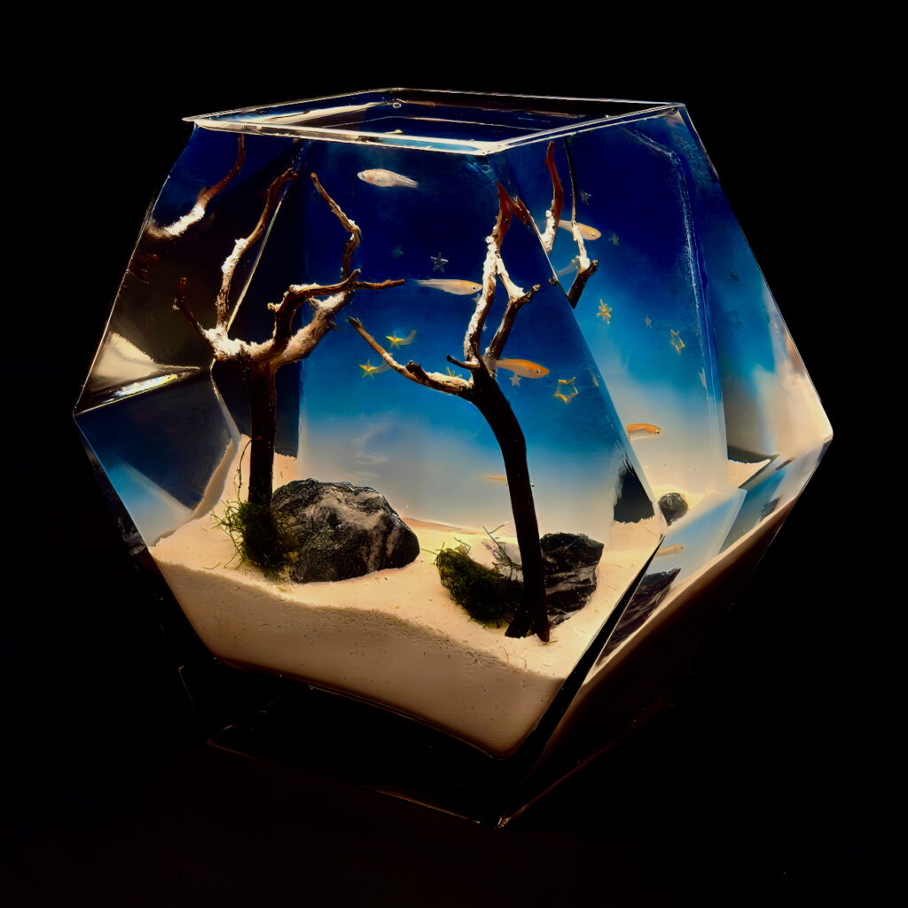 ──白銀の霧と星光が溶け合う、冬の幻想アクアインテリア──